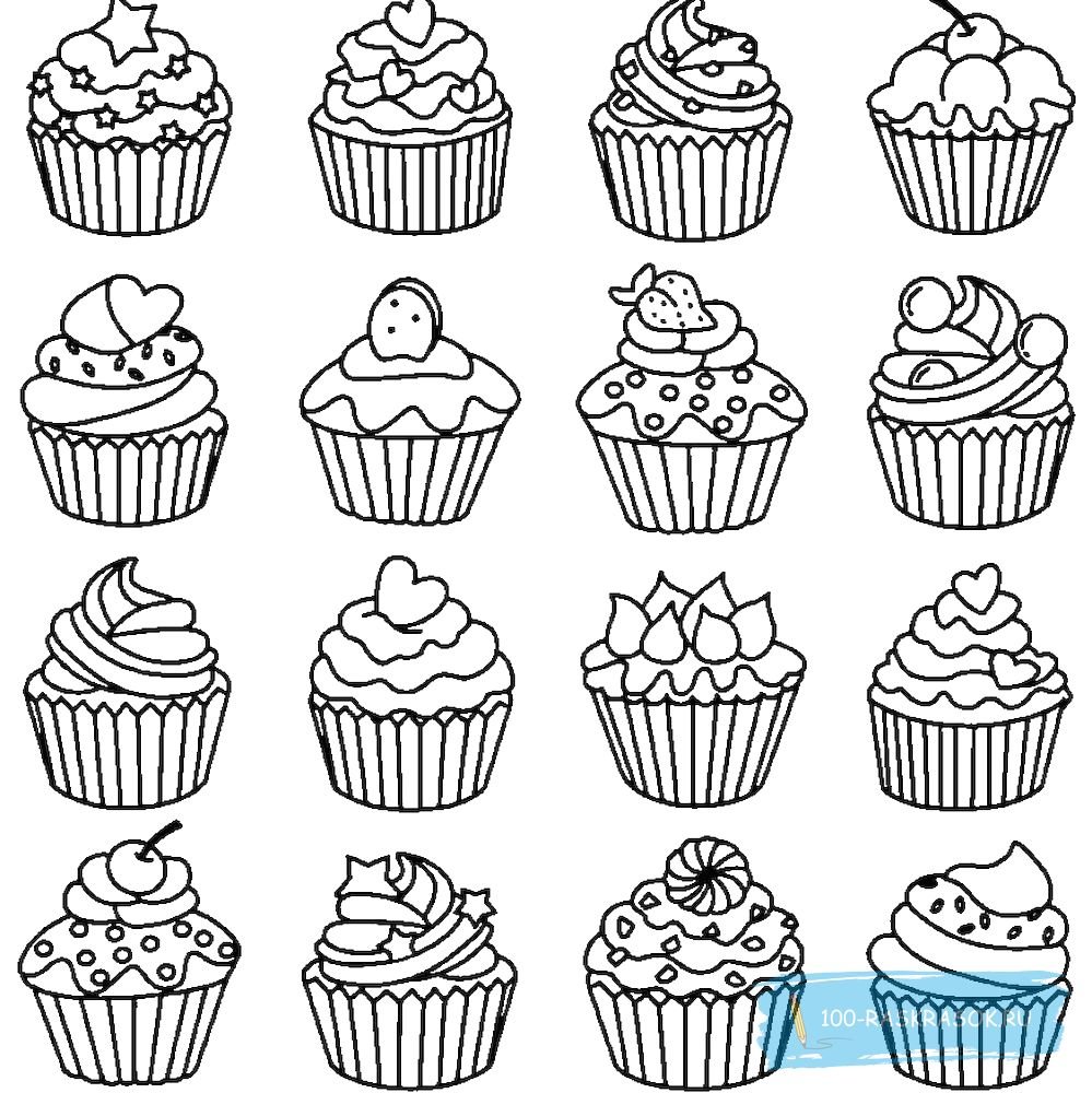 Раскраски капкейки и кексы