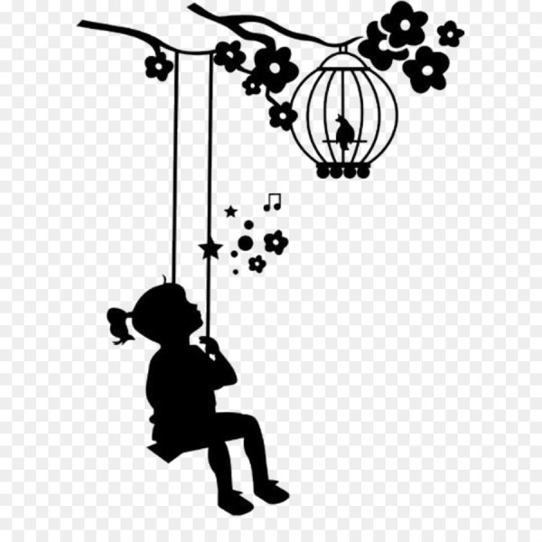 ![Девочка на качелях силуэт]()