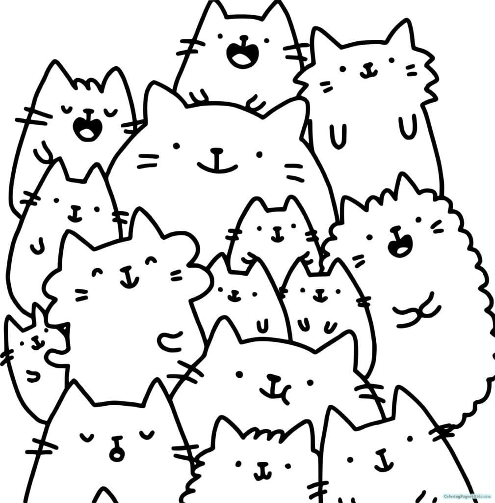 Раскраска много котиков