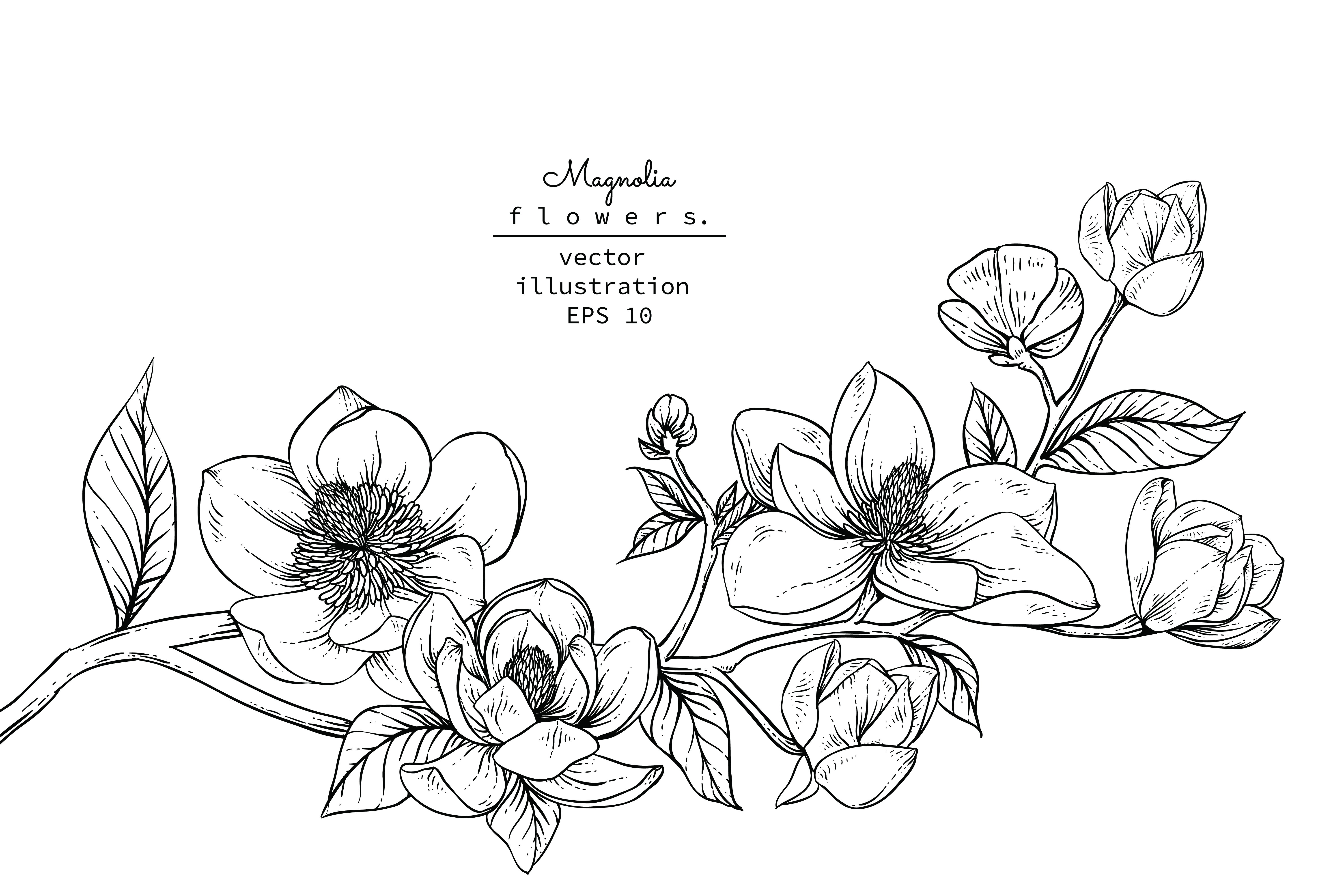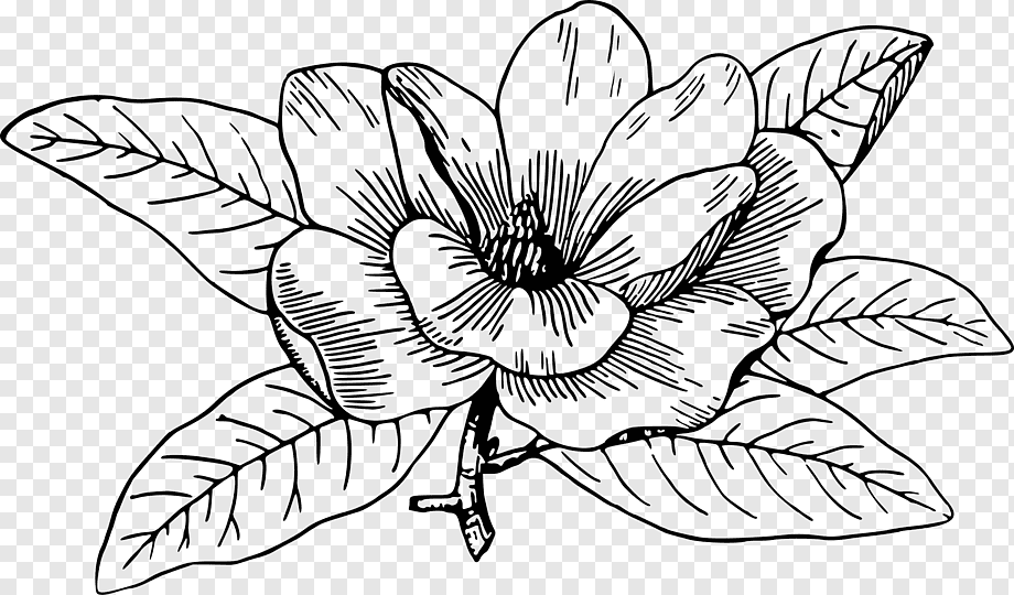 ![Магнолия цветок вектор чб]()