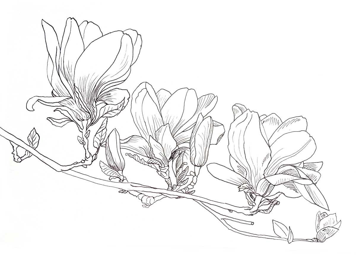 ![Ветка магнолии эскиз]()