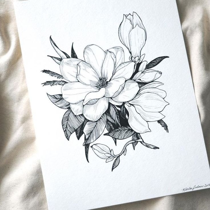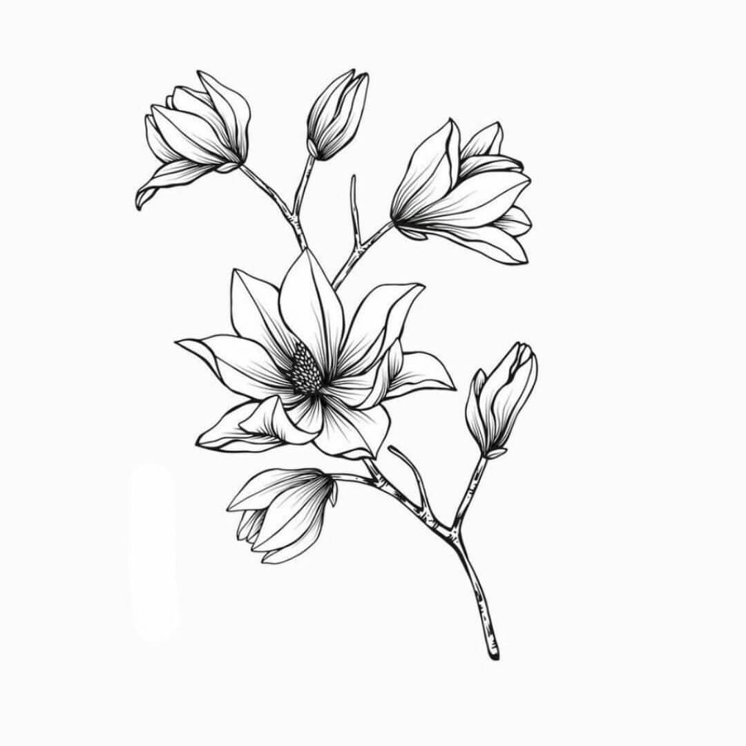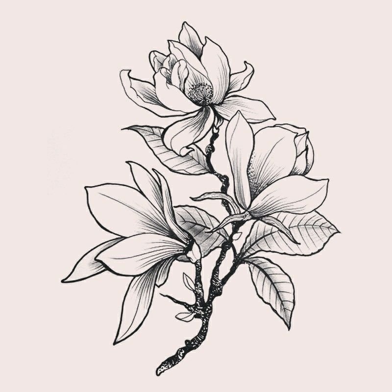 ![Магнолия цветок эскиз тату]()