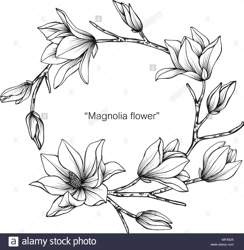 ![Ветка магнолии рисунок для срисовки]()