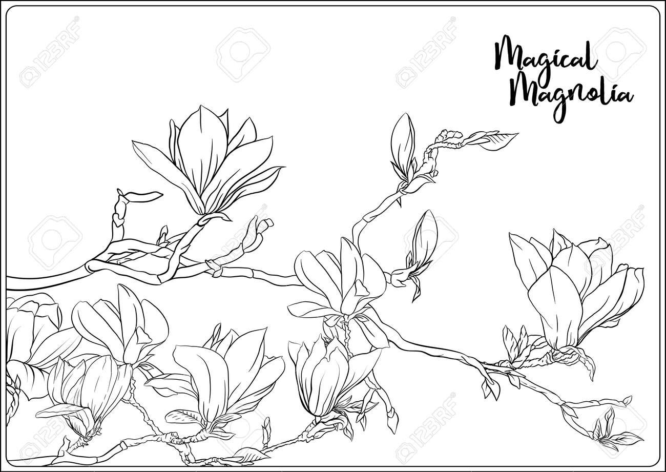 ![Магнолия на ветке чб вектор]()