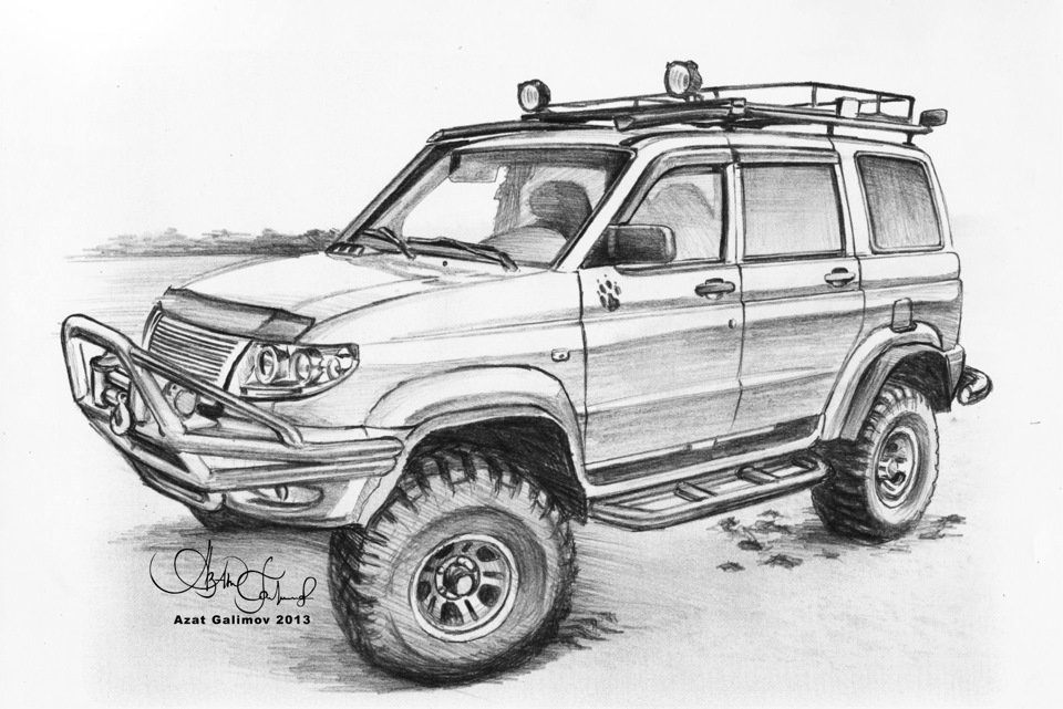 Черно-белый рисунок Уазика - это стильное и оригинальное изображение этого легендарного внедорожника. Благодаря монохромной гамме, рисунок выглядит классически и элегантно. Он подчеркивает силу и неповторимость Уаза, его агрессивность и прочность. Черные и белые контрасты создают насыщенный и выразительный образ, который привлекает внимание и вызывает эмоции. Этот рисунок будет отличным украшением для любителей автомобилей и поклонников Уаза, а также станет ярким акцентом в интерьере или на одежде. Выражайте свою страсть к авто через стильные чёрно-белые рисунки Уазиков!