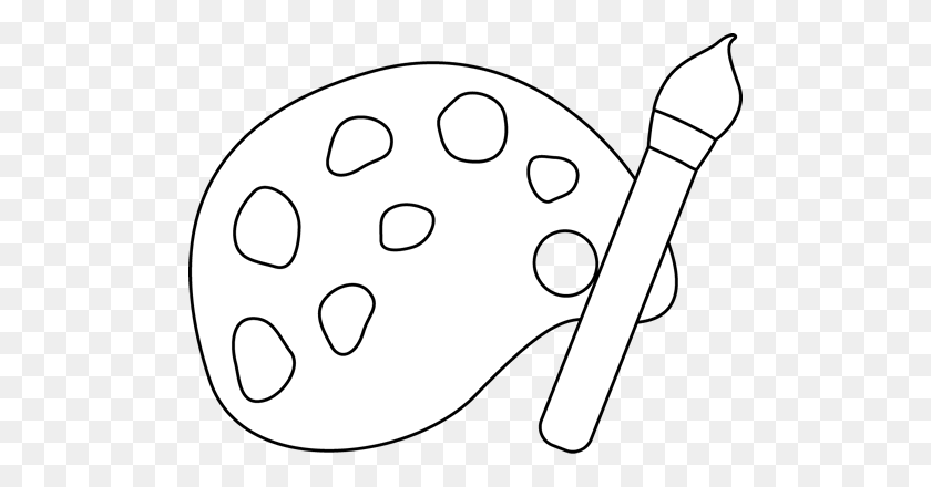 Палитра с кистью черно белая