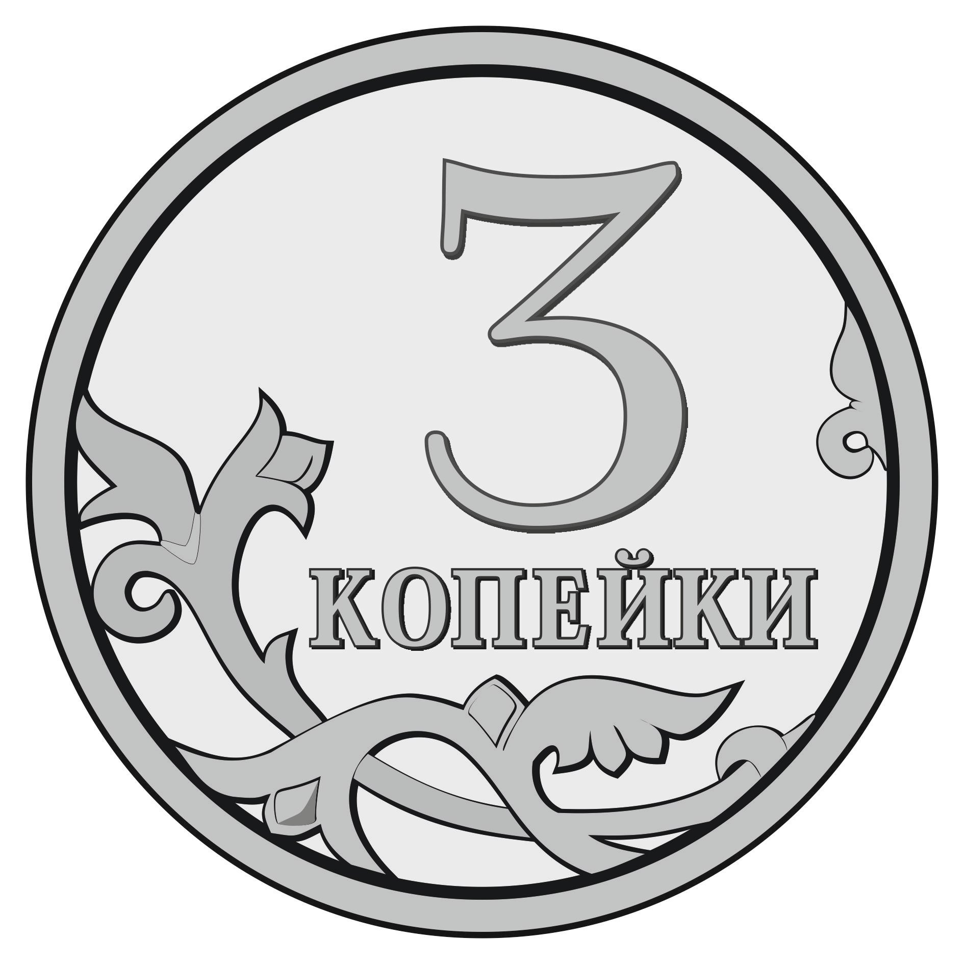 ![Три копейки для раскрашивания]()