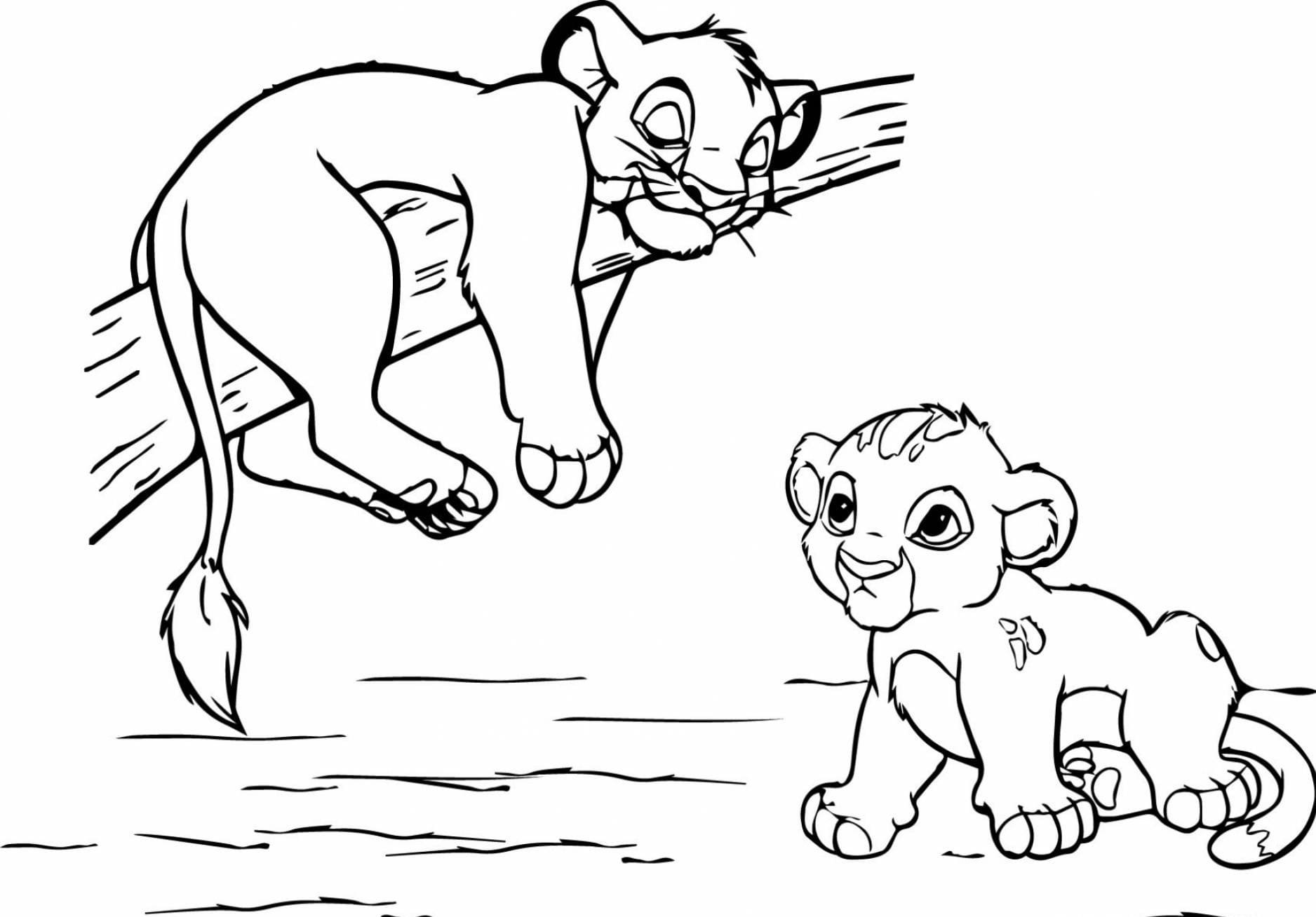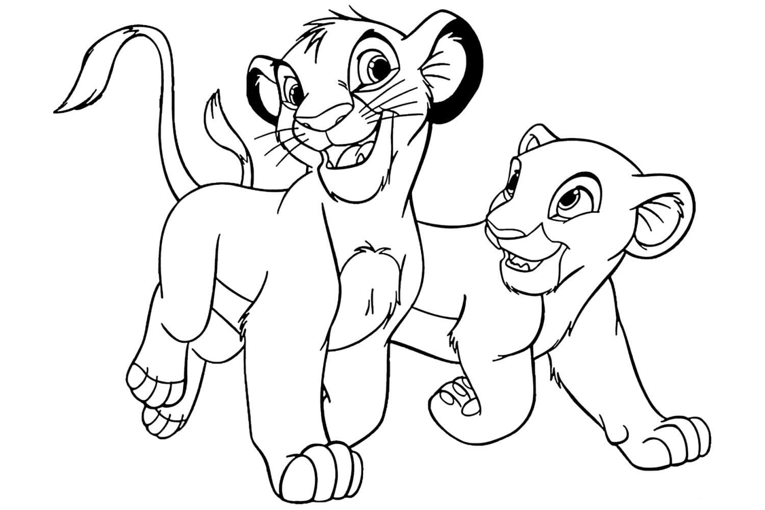 ![Раскраска Король Лев 2 львята]()