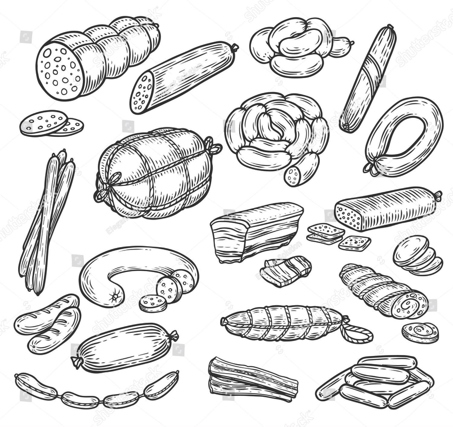 Раскраска колбасные изделия