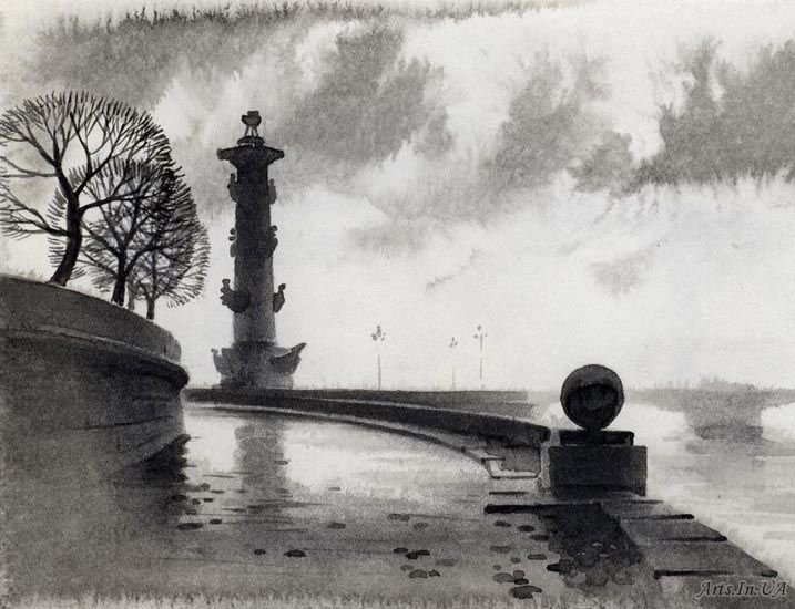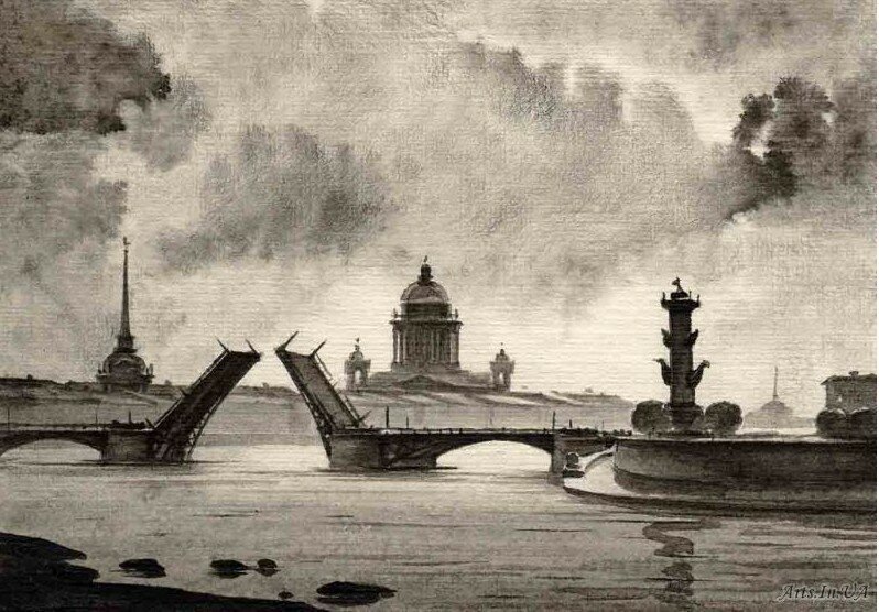 ![Гризайль пейзаж Питер]()