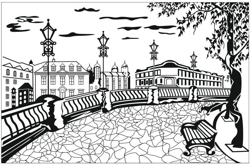 ![Городской пейзаж трафарет]()