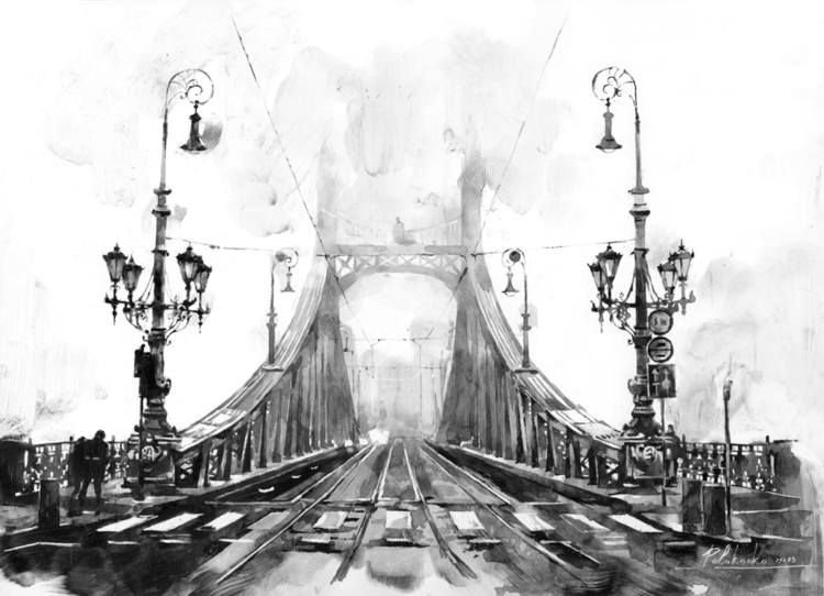 ![Мост картина карандашом]()