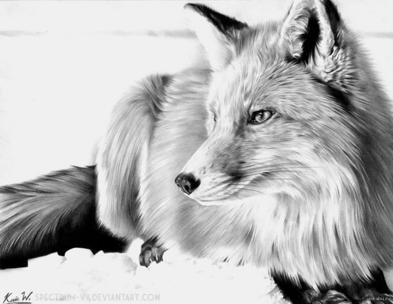 ![Лиса черно белая]()