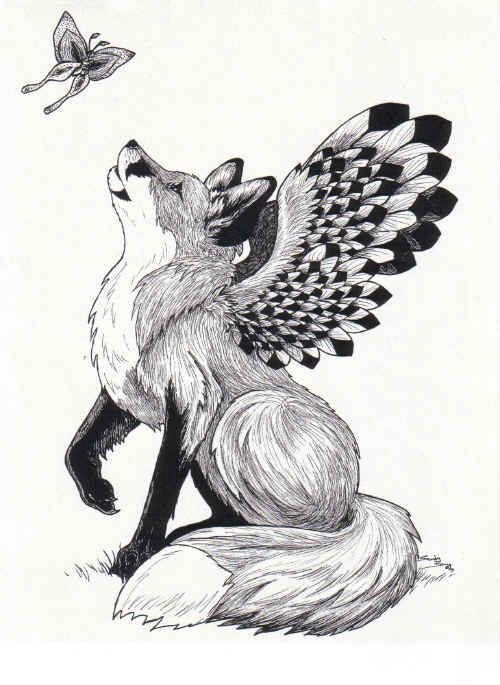 ![Тату лиса эскизы черно белые]()