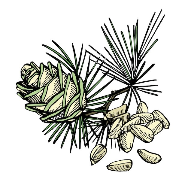 Ботанические зарисовки кедр Сибирский