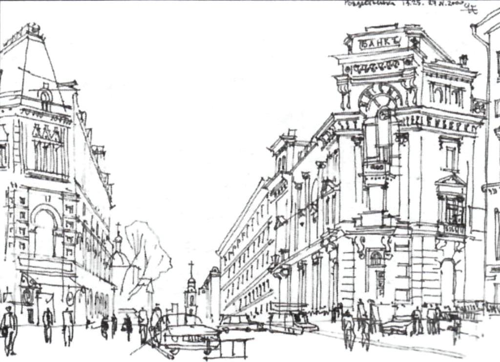 Городской пейзаж линейная перспектива скетч