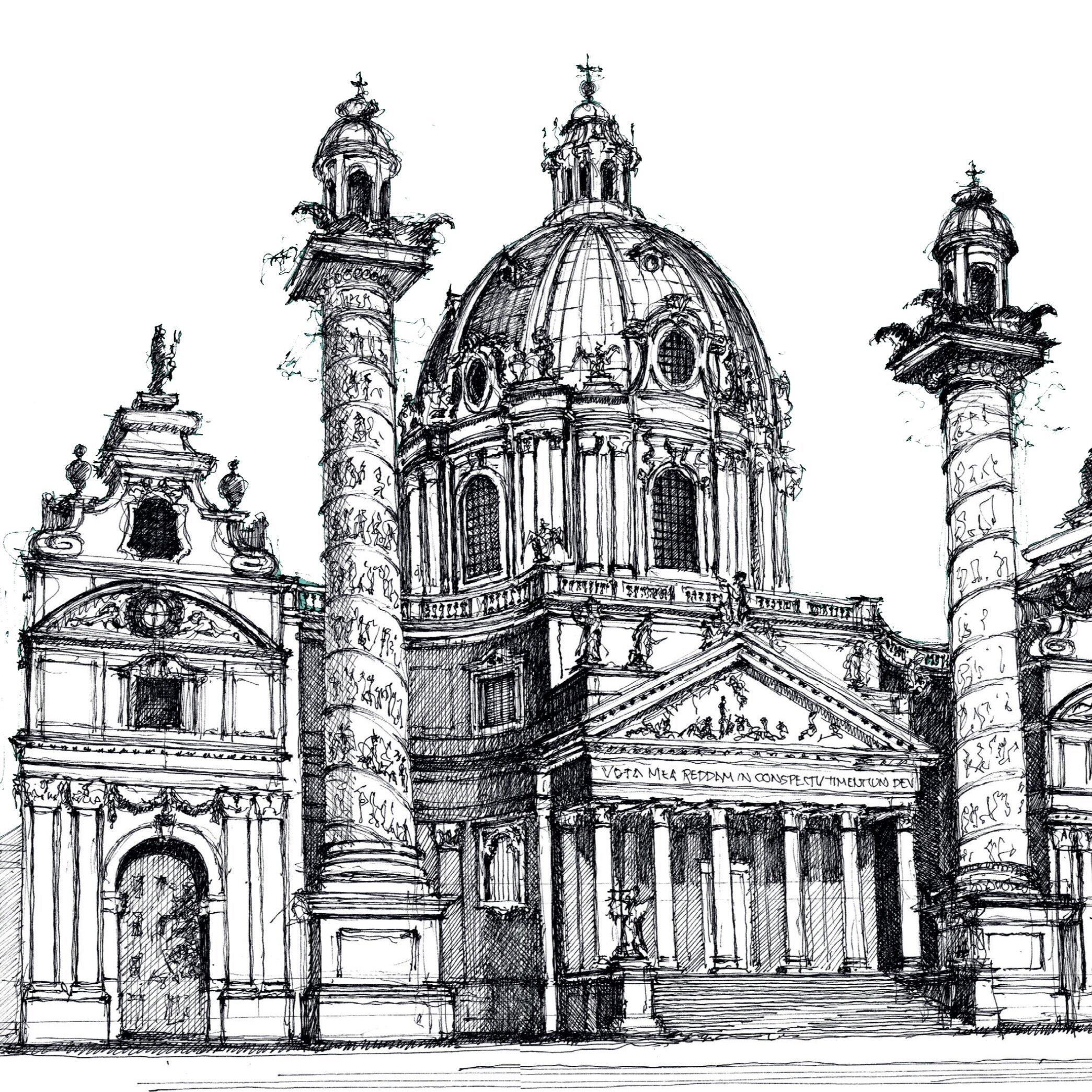 ![Карлскирхе Вена чертеж]()