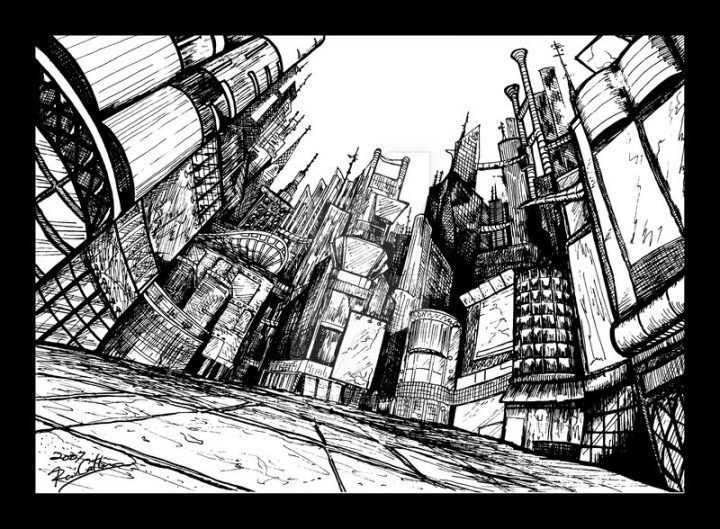 ![Городской пейзаж линейная перспектива скетч]()