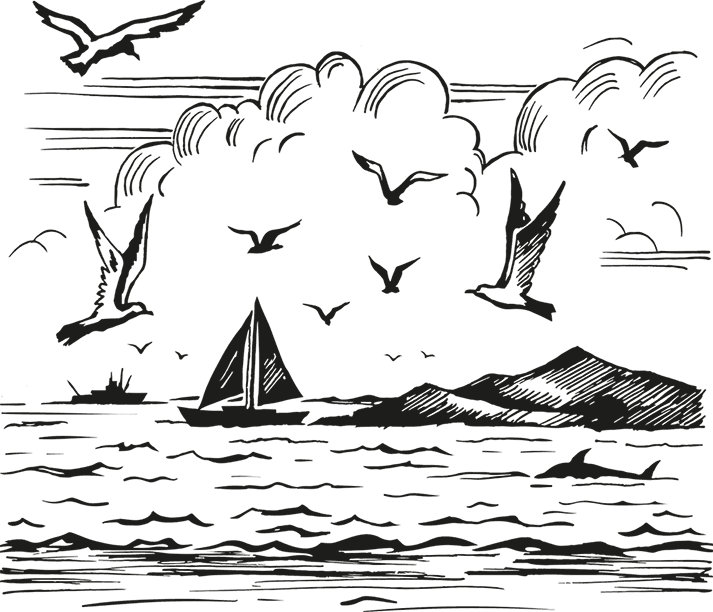 Морской пейзаж раскраска