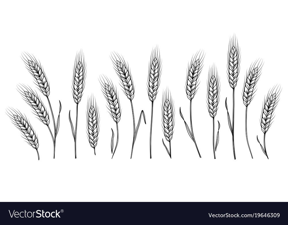 ![Колос пшеницы черно белый]()