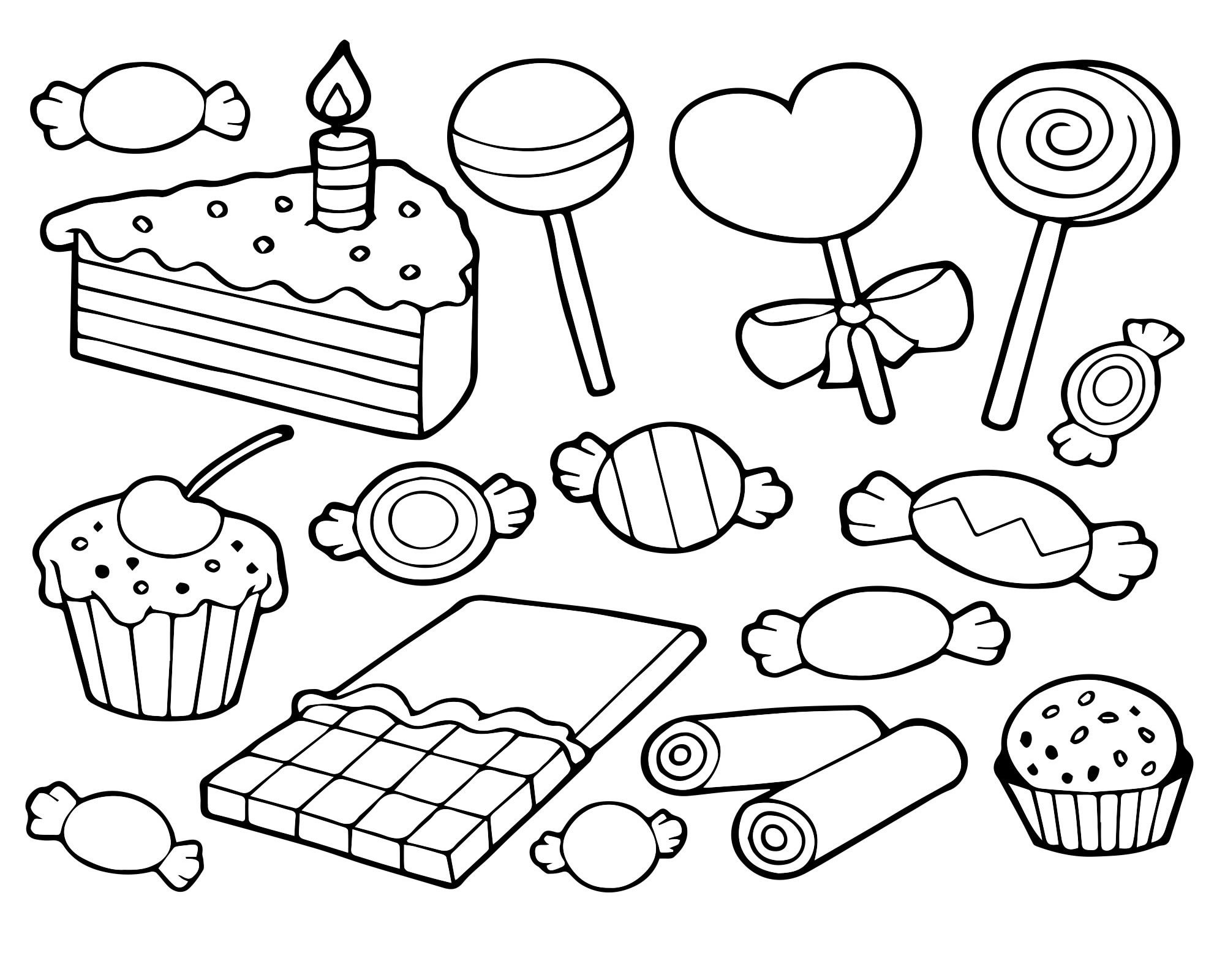 ![Сладости для рисования черно белые]()
