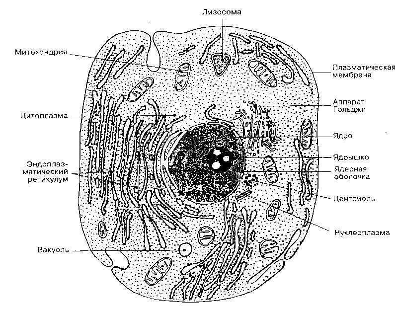 Схема микроскопического строения животной клетки