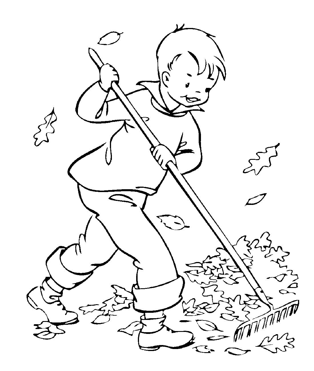 ![Раскраска уборка листьев осенью]()