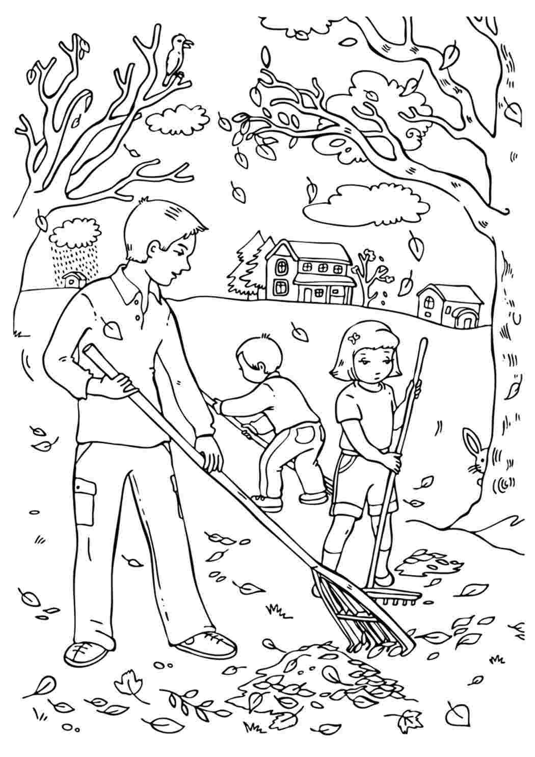 ![Осенний труд раскраска]()
