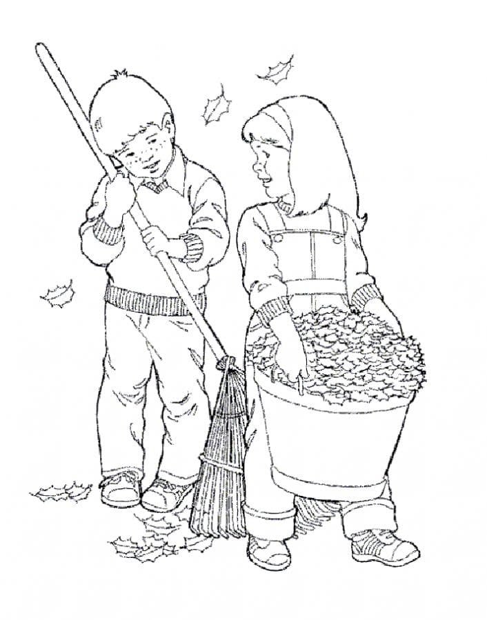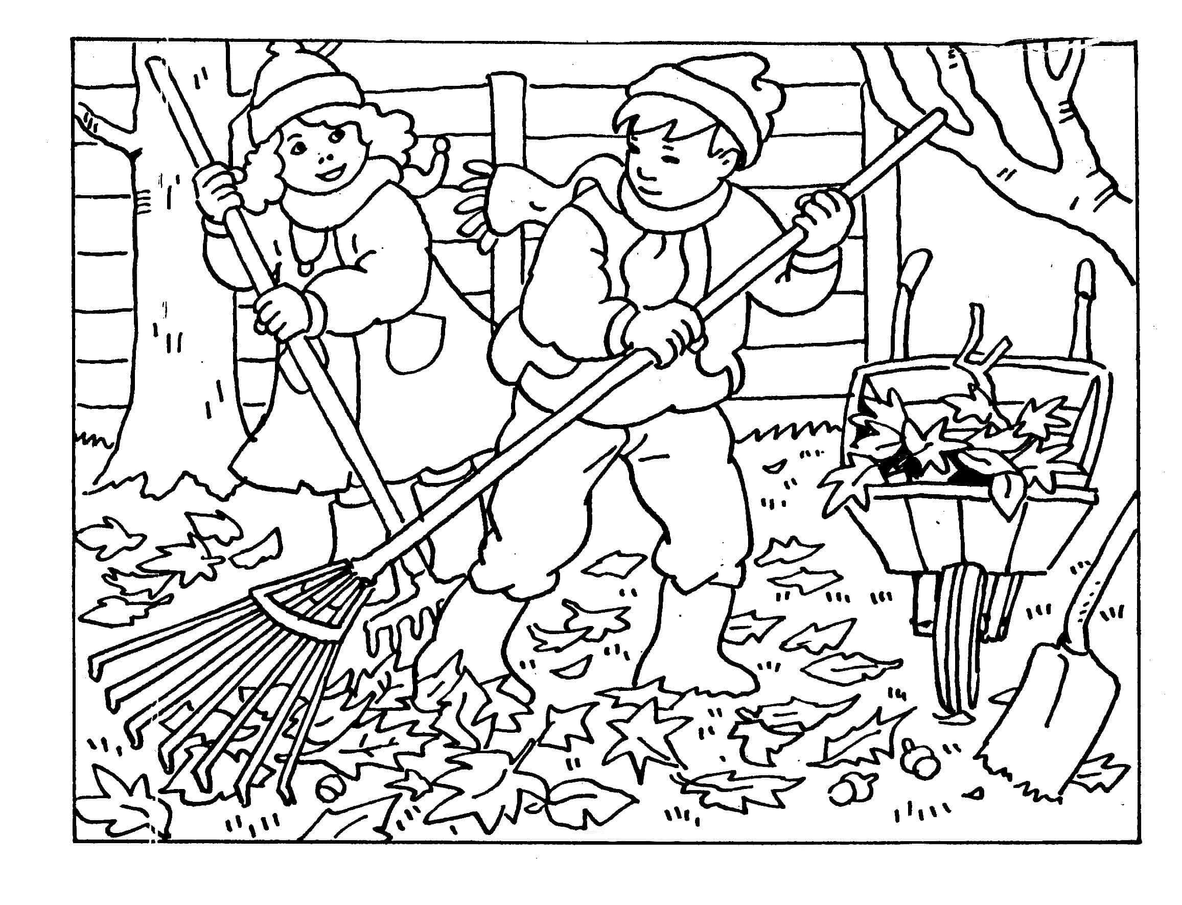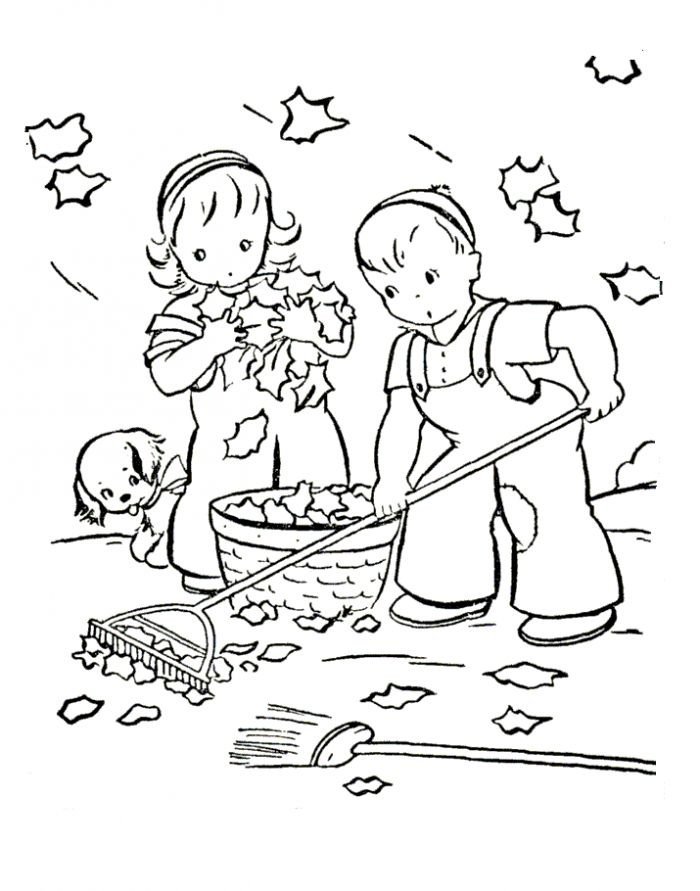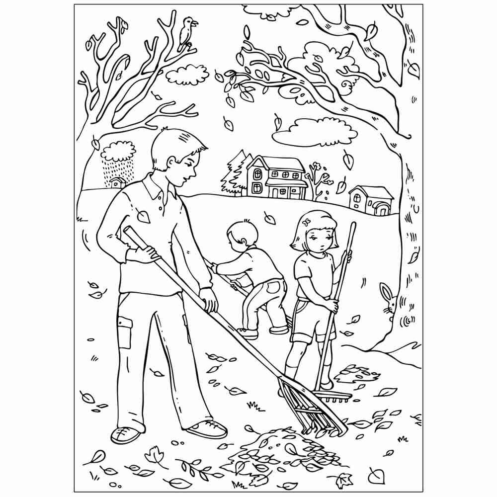 Раскраска уборка листьев осенью