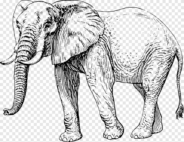Слон рисунок черно белый
