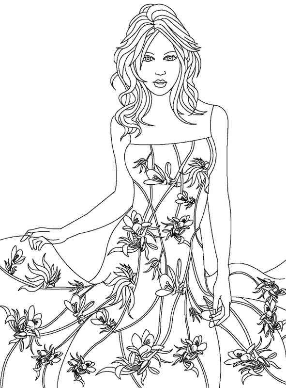 Раскраски девушки и цветы
