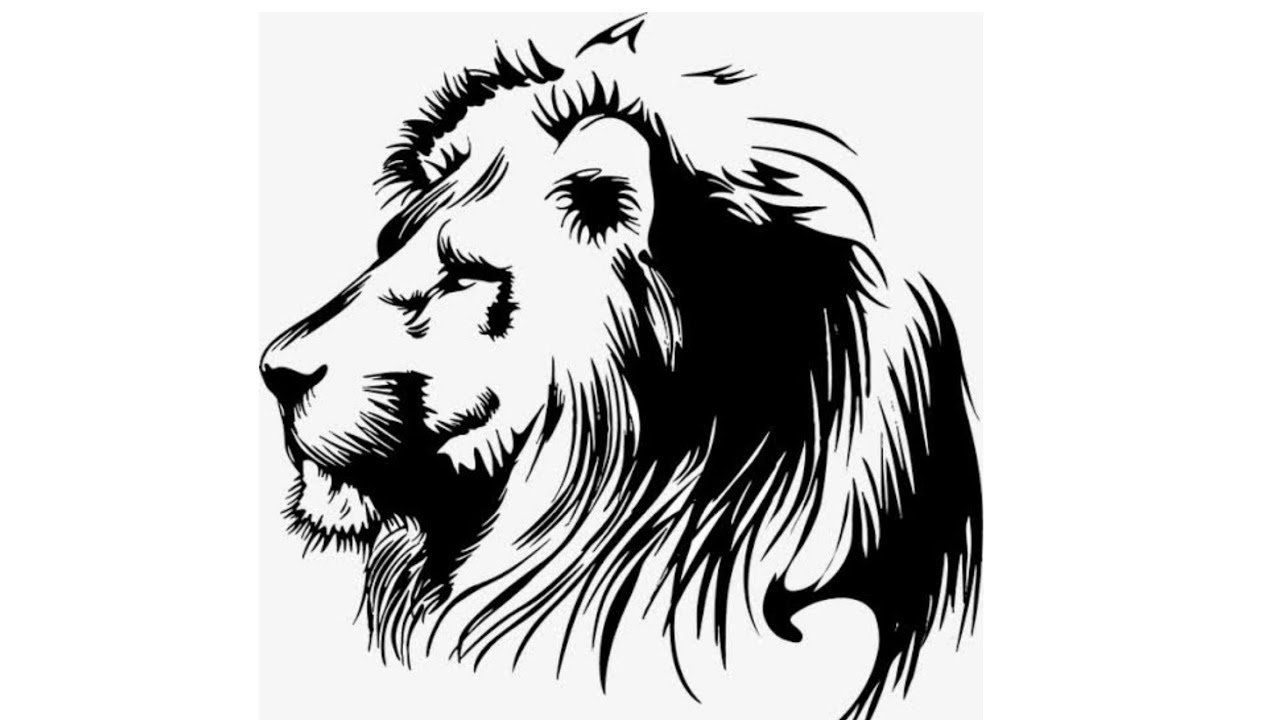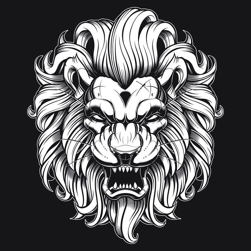 ![Морда Льва черно белая]()