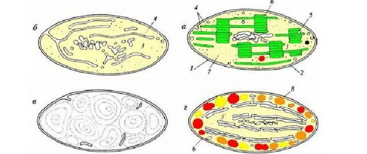 ![Строение хлоропласта лейкопласта и хромопласта]()