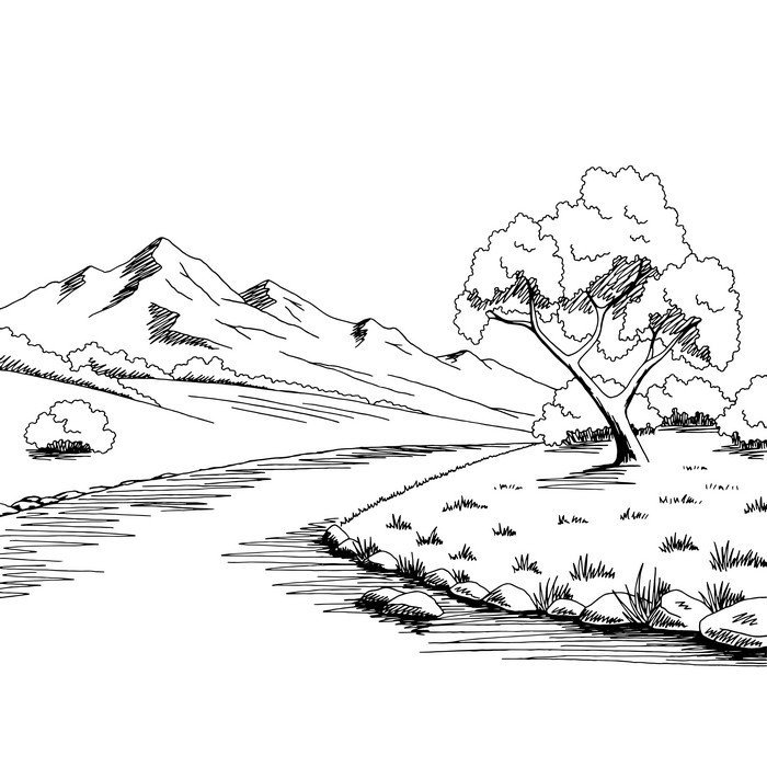 Пейзажи природы для детей чёрно белый