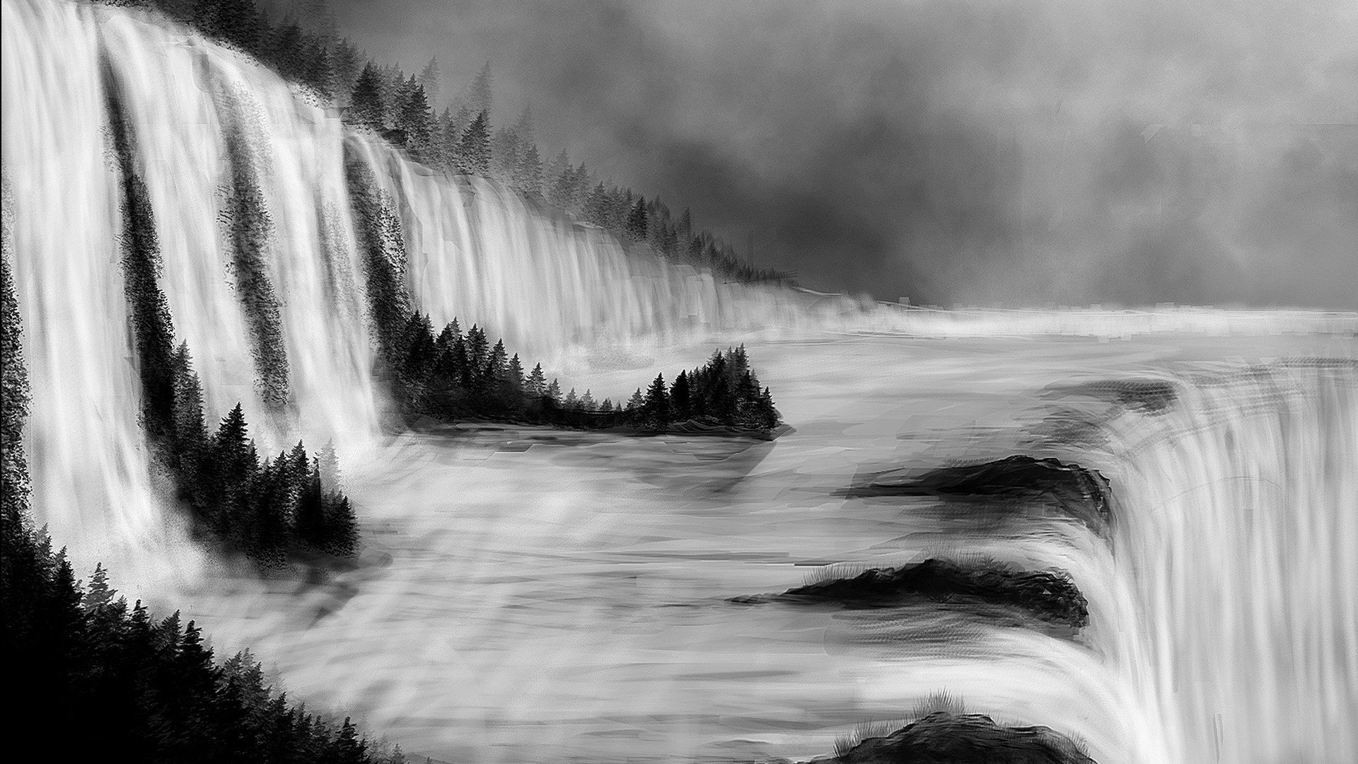 ![Черно белый пейзаж легкий]()