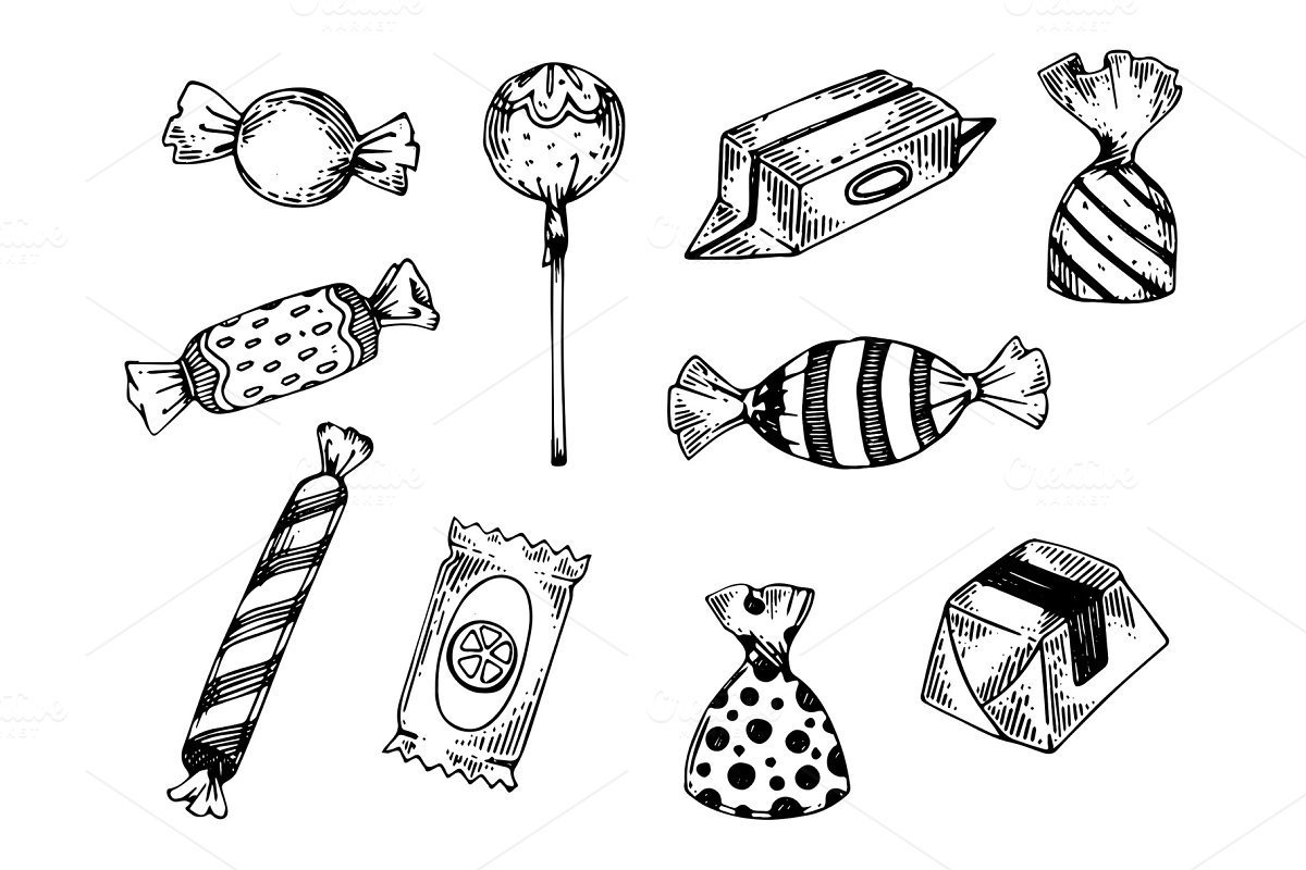 ![Конфеты для детей черно белые]()