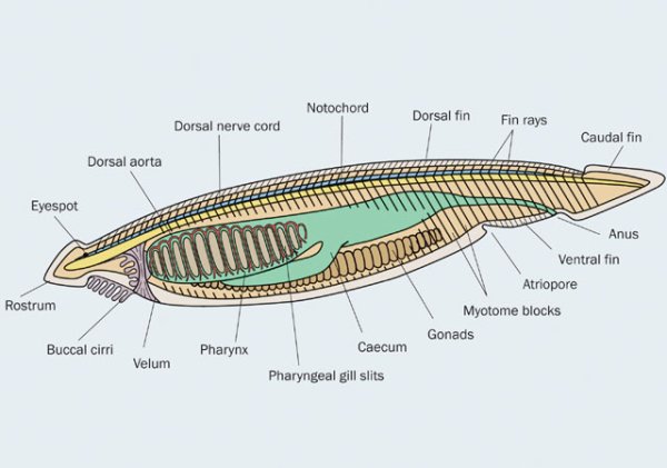 Схема внутреннего строения ланцетника