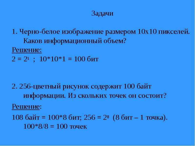 ![Вычисли объем черно-белого без градаций серого изображения в байтах]()