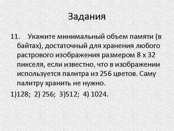 Укажите минимальный объем памяти