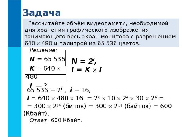 ![Подсчитать объем видеопамяти необходимый для хранения черно белого]()