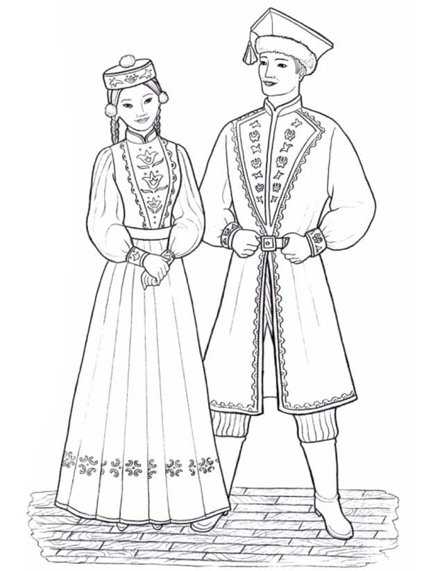 Национальный костюм Калмыков раскраска