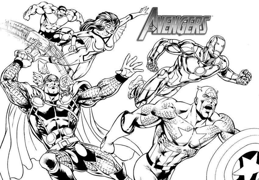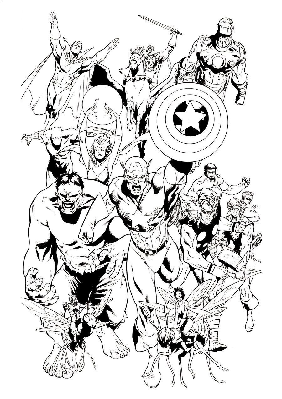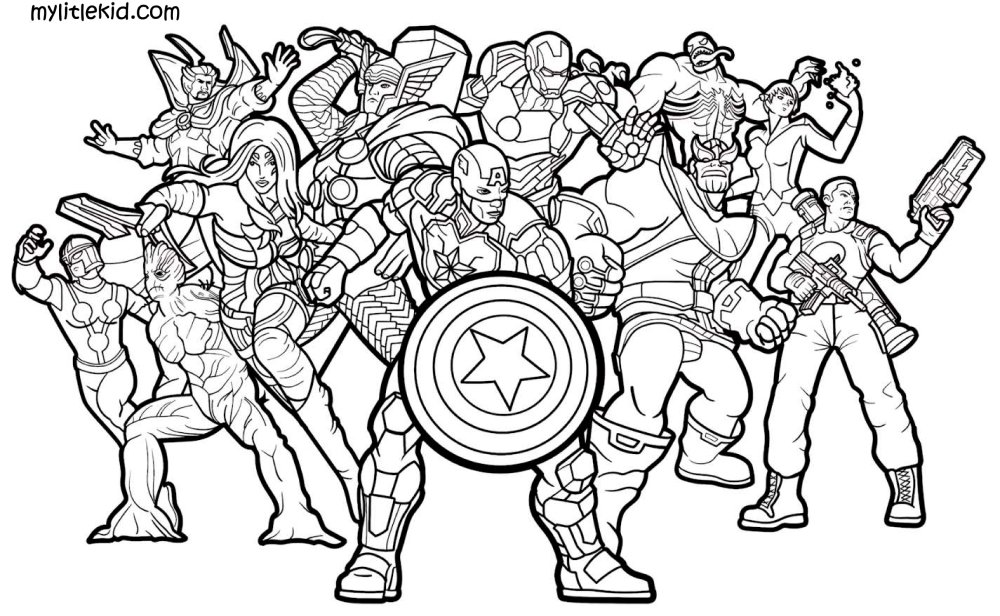 ![Раскраска героев Марвел Мстители]()