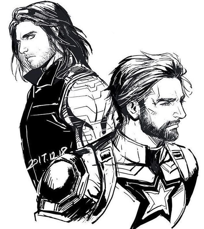 ![Стив Роджерс и баки Барнс война бесконечности]()