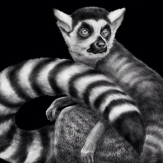Лемур рисунок чб