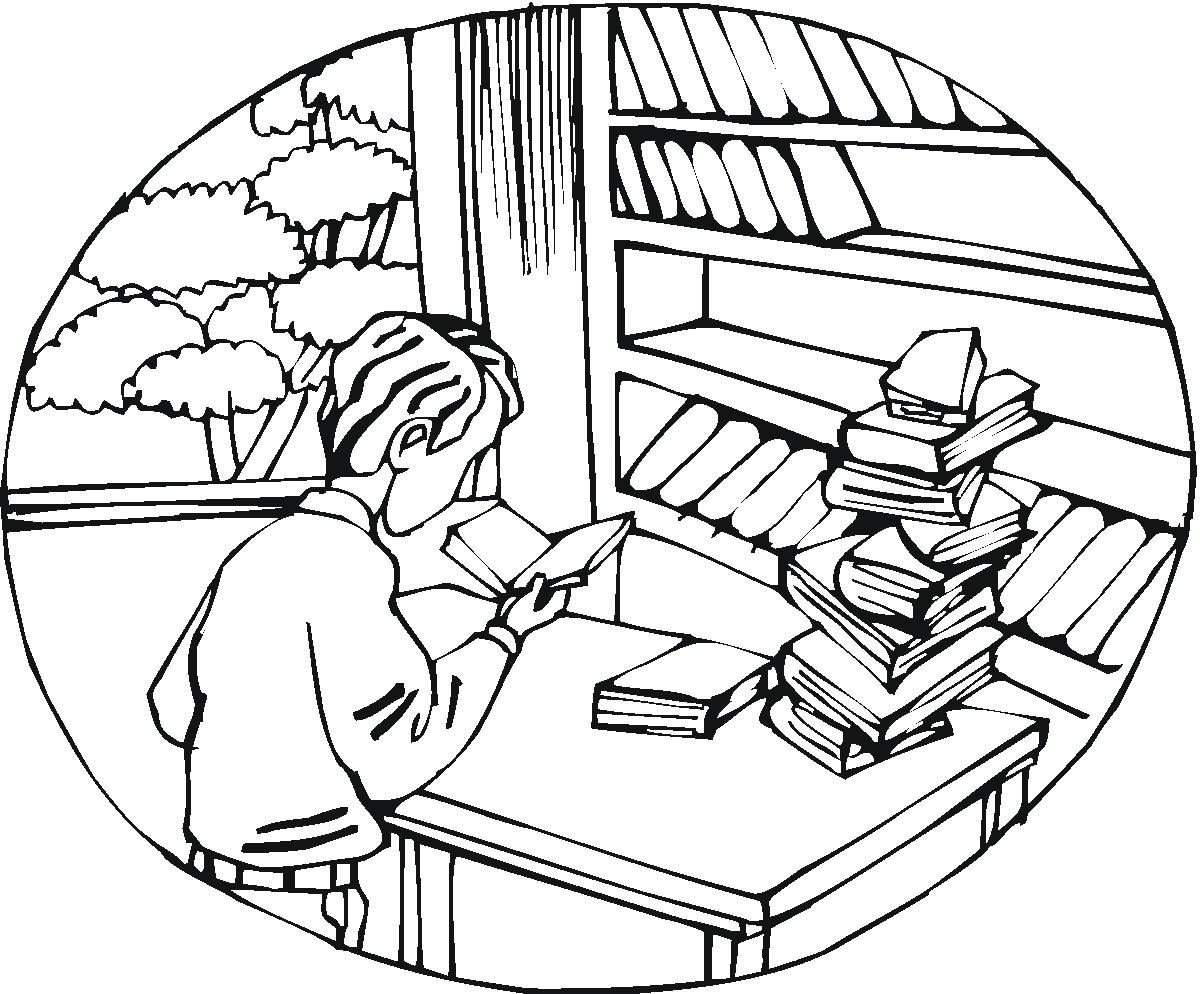 ![Раскраска на тему библиотека]()