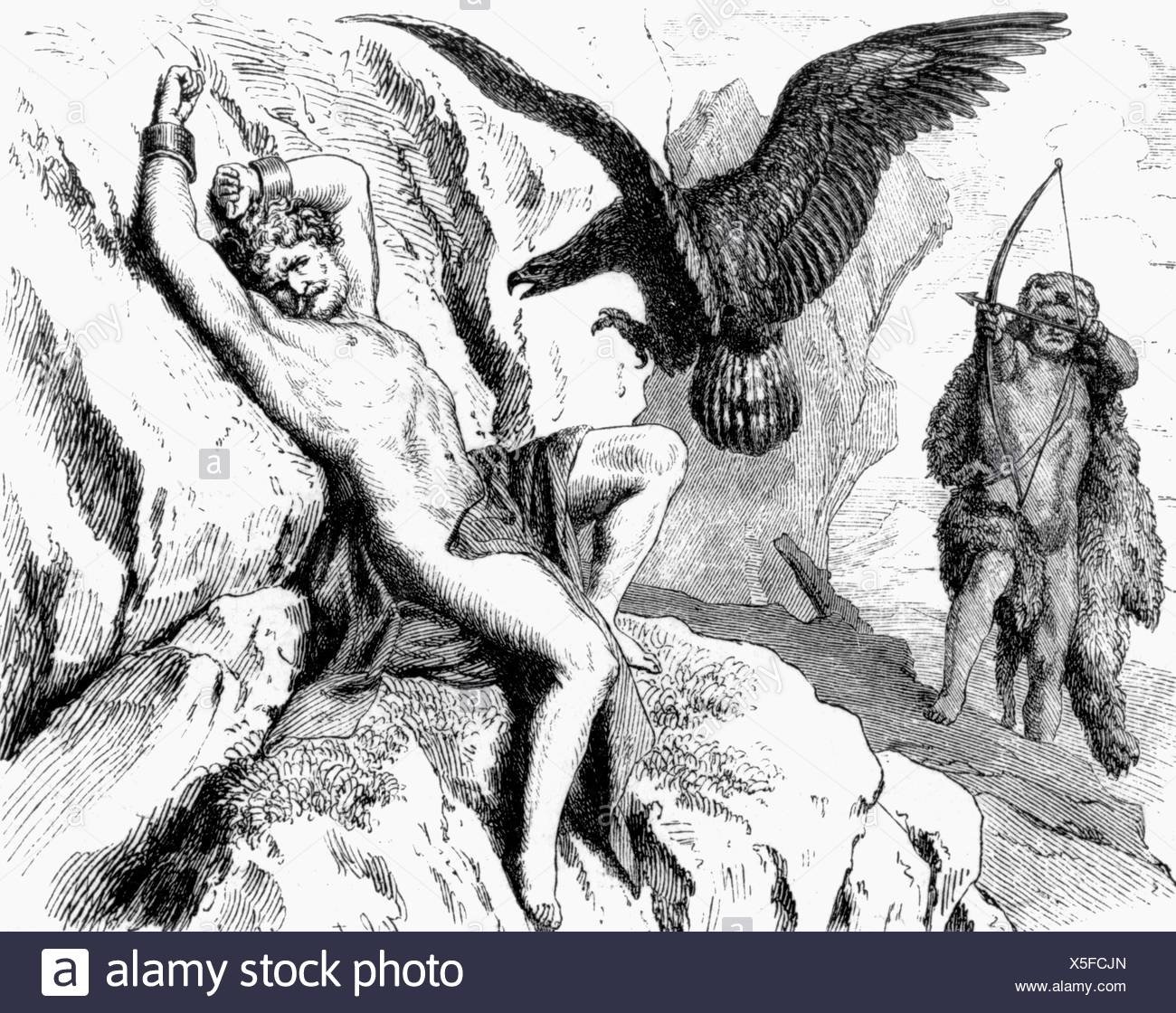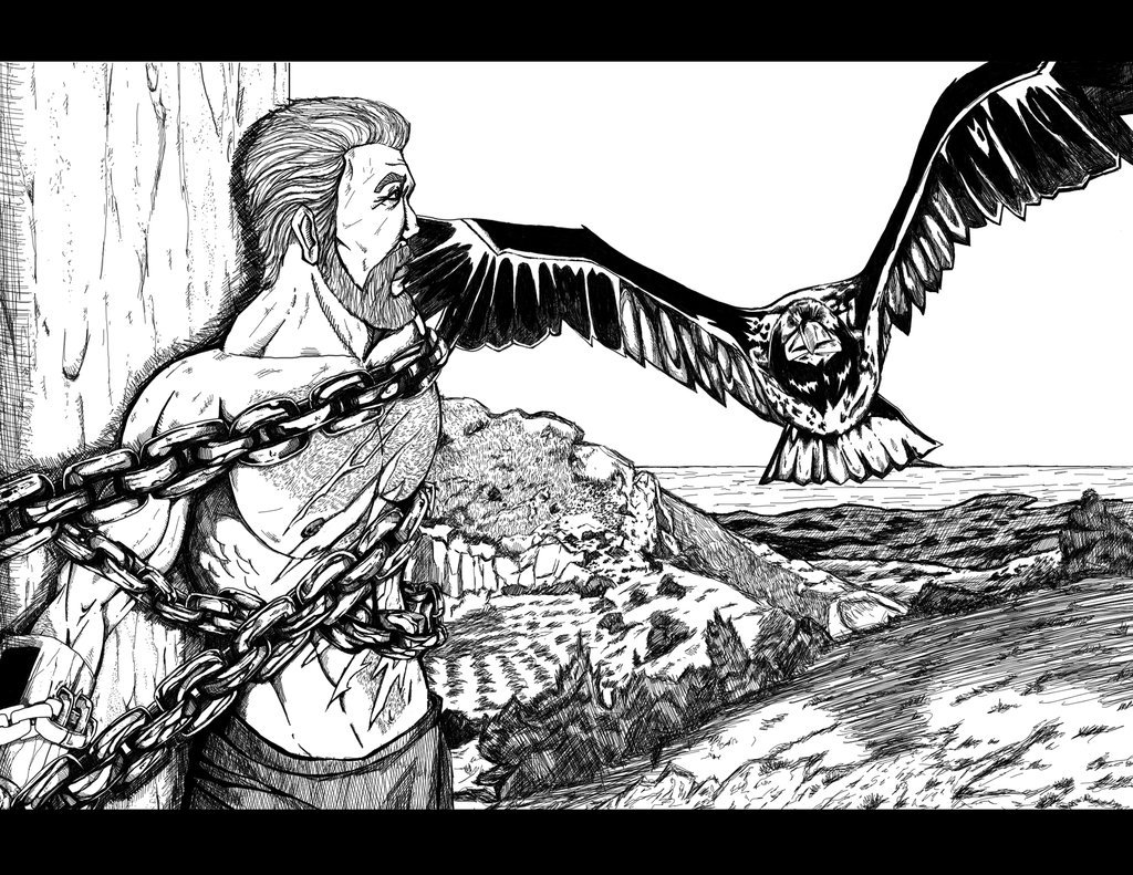 ![Прометей прикованный к скале рисунок]()