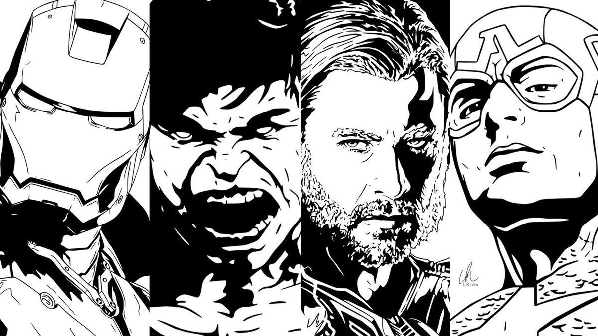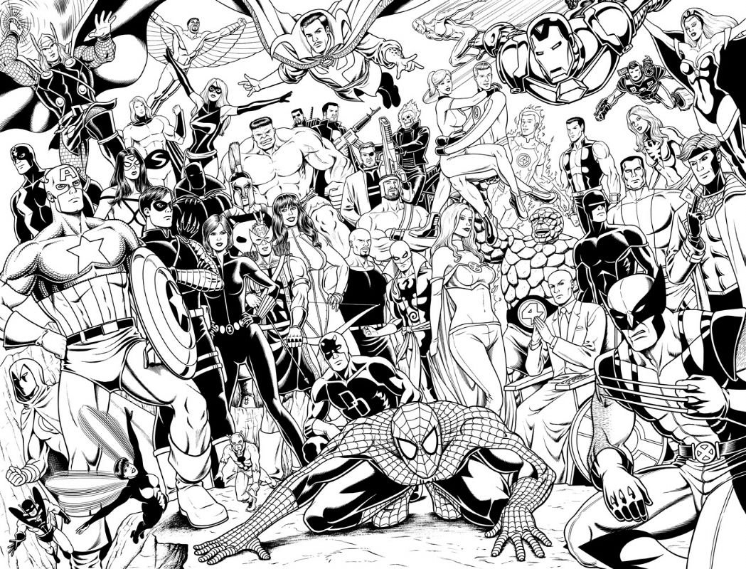 Марвел раскраска черно белый