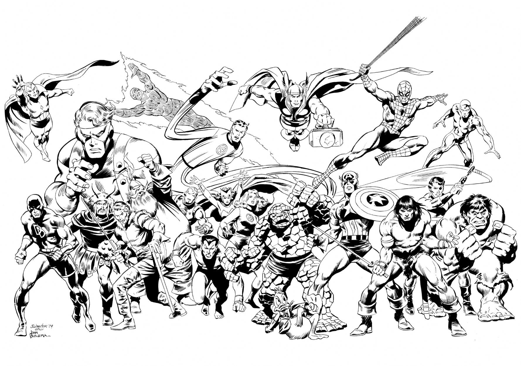 ![Герои комиксов черно белые]()