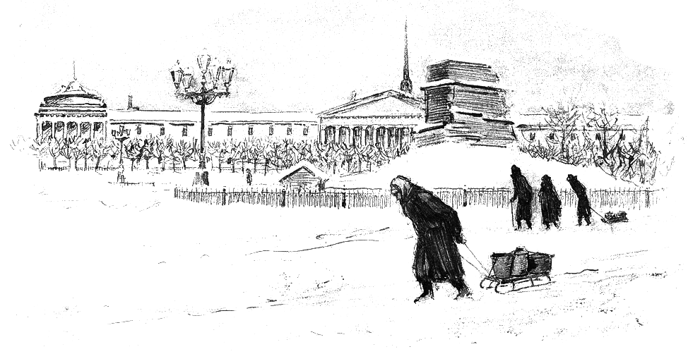 ![Гравюра блокадного Ленинграда]()