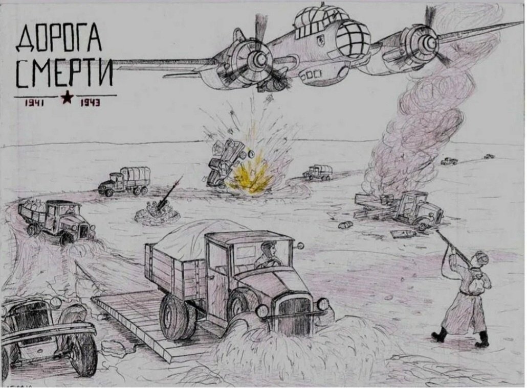 ![Картина блокада Ленинграда дорога жизни]()